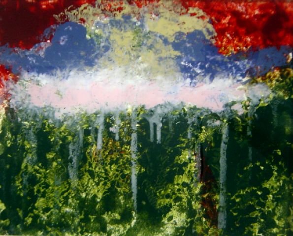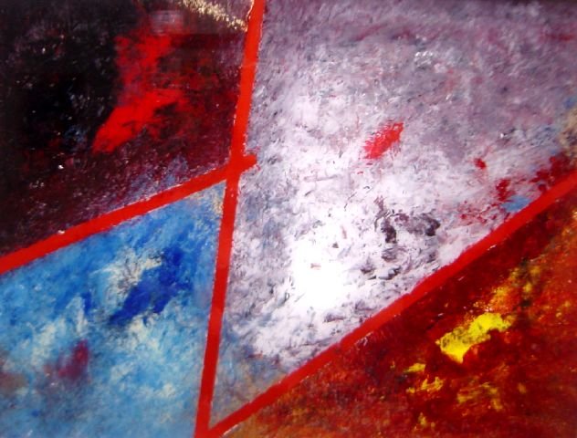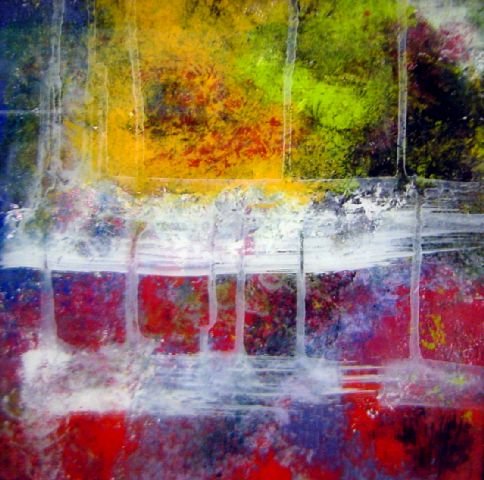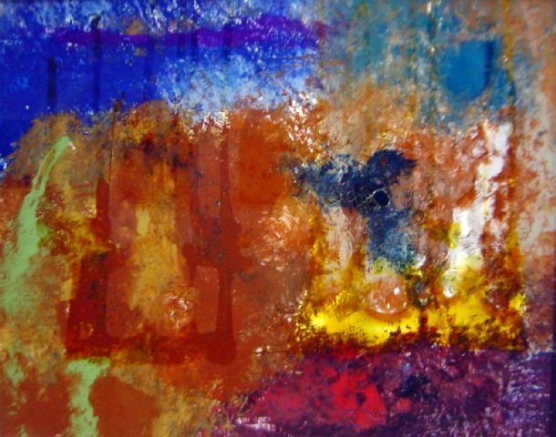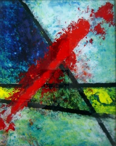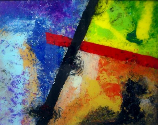 Nach anfänglichen Versuchen auf Papier habe ich die Hinterglasmalerei für mich entdeckt. Sie bietet mir die Möglichkeit der abstrakten Interpretation von Farben, die durch das Glas zum Leuchten gebracht werden.