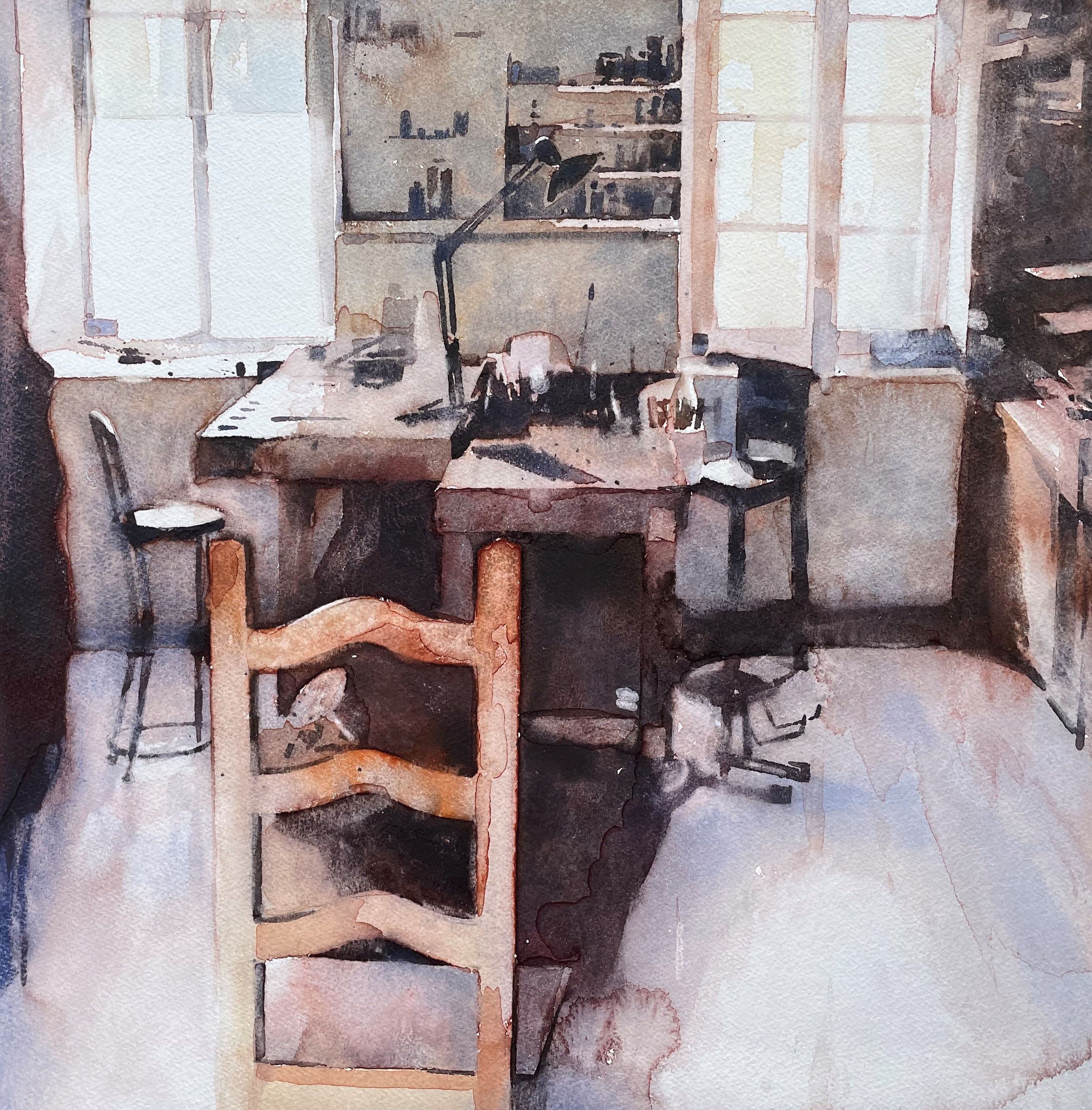 "Von Beginn an steht die Kunst des Aquarells in einer engen strukturellen Verbindung zum Erlebnis und zur Darstellung der Landschaft in der Malerei. Die transparenten Farben, besonders farbschöne lichtechte und fein geriebene Pigmente, das sie durch die Bewegung des Pinsels verteilende und zum Leuchten bringende Wasser und das als Malgrund dienende weiße Papier sind die Voraussetzungen dieser sensiblen und ganz von der Anschauung und dem Erlebnis des Künstlers geprägten Kunst. Dabei ist es die besondere Eigenart des Aquarells, vom Künstler die höchste Konzentration, Geistesgegenwart und persönliche Spontaneität zu verlangen.