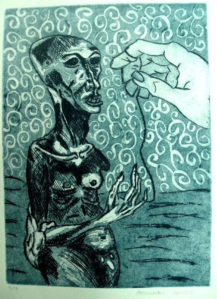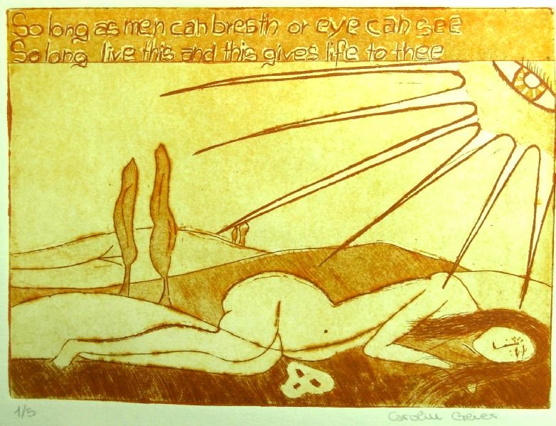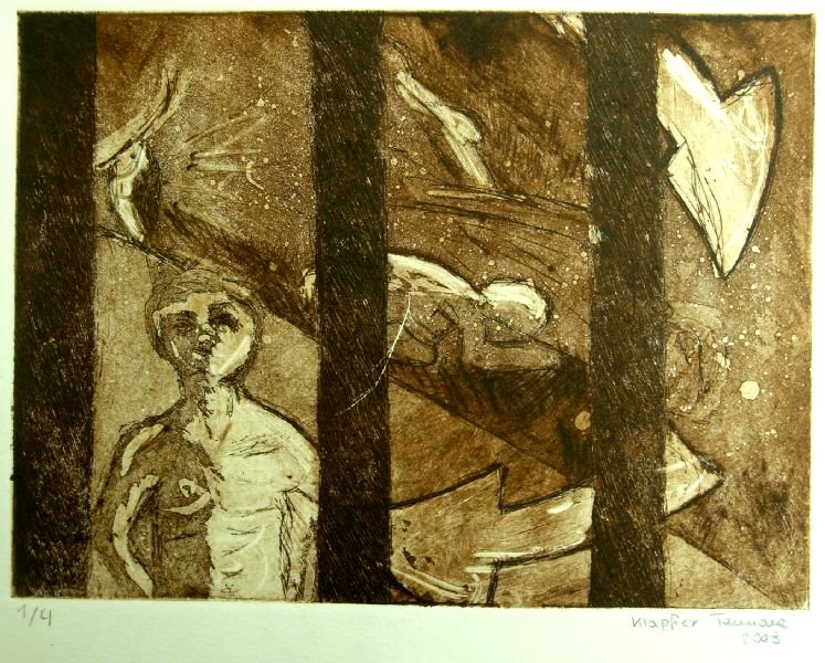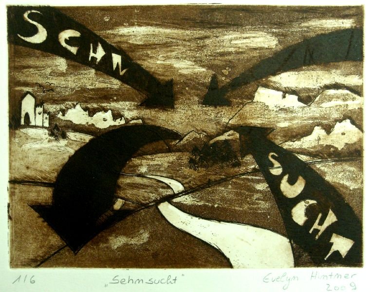Die SchülerInnen erarbeiteten ihre ersten Ätzradierungen nach allen Gesetzen der Druckgrafik. Zinkplatten wurden mit Asphaltlack beschichtet, geschwärzt und dann mit Hilfe von Radiernadeln die ersten Zeichen gesetzt. Anschließend wurden die Platten im Säurebad geätzt, eingefärbt und konnten dann auf speziellem Papier gedruckt werden. Zu Gedichten von bekannten oder auch weniger bekannten Dichtern und Autoren, wie Reiner Maria Rilke oder Pablo Neruda gestaltete die SchülerInnen ihre eigenen Werke, die sich sehen lassen können.