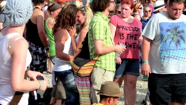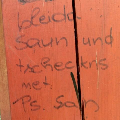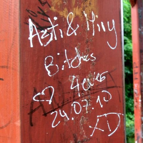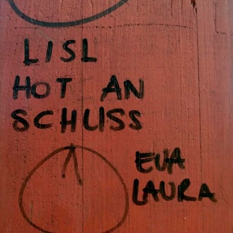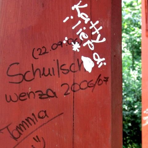 Die Ausstellung I ♥ E M O T I O N beinhaltet zwei konzeptionelle Fotozyklen, für die sich Armin Mutschlechner der Schnappschussästhetik bedient. Carl Gustav Jung meinte, dass man ohne Emotionen Dunkelheit nicht in Licht und Apathie nicht in Bewegung verwandeln kann, sie also die Antriebsfedern unserer aller Existenz sind. Und so fotografiert Armin Mutschlechner an Orten, an denen Emotionen gelebt und verewigt werden. Zum einen während eines Reggaekonzertes am Chiemsee (D), zum anderen einen Pavillon in Bruneck, der als Treffpunkt für die Jugend fungiert. Allerdings stehen diese Bilder stellvertretend für all jene hochemotionalen Gruppenerlebnisse und Orte, wo sich die gesamte Bandbreite menschlicher Emotionen auf engstem Raum beobachten bzw. ablesen lässt. Entstanden ist so ein visuelles Tagebuch der Gefühle einer ganz bestimmten Altersgruppe. Ohne Glorifizierung richtet der Fotograf seine Kamera auf das anwesende Konzertpublikum, wir nehmen an intimen Momenten einer zärtlichen Begegnung aber auch an einem Moment von großer Einsamkeit teil. Bekanntlich kann man sich nirgendwo mehr alleine fühlen als in einer großen Menschenmenge. Das Wort „Freedom“ ist als T-Shirt-Aufdruck auf einem der Fotos zu sehen, und diese Freiheit nehmen sich die Jugendlichen auch, wenn sie ihre Kritzeleien mit Liebes- oder Abneigungsbekundigungen oder auch nur ihre Namen an den rot gestrichenen Pfosten eines Holzpavillons hinterlassen. Armin Mutschlechner zeigt sehr ehrliche Bilder, nichts ist inszeniert, es sind Fotos, die über die Verhaltensweisen der jungen Generation hinaus auch etwas über die Zeit erzählen, in der wir leben. (Brigitte Matthias)
