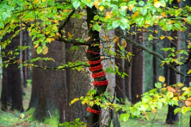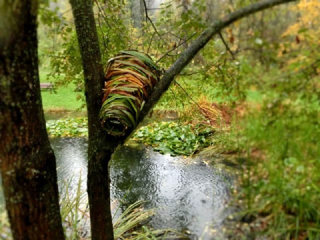 Ziel dieses fächerübergreifenden Projektes war es Kunstwerke möglichst nur mit Materialien vor Ort zu gestalten und in die Natur zu integrieren. Eine besondere Herausforderung war der ständige Regen, der aber der Motivation der SchülerInnen nichts anhaben konnte.