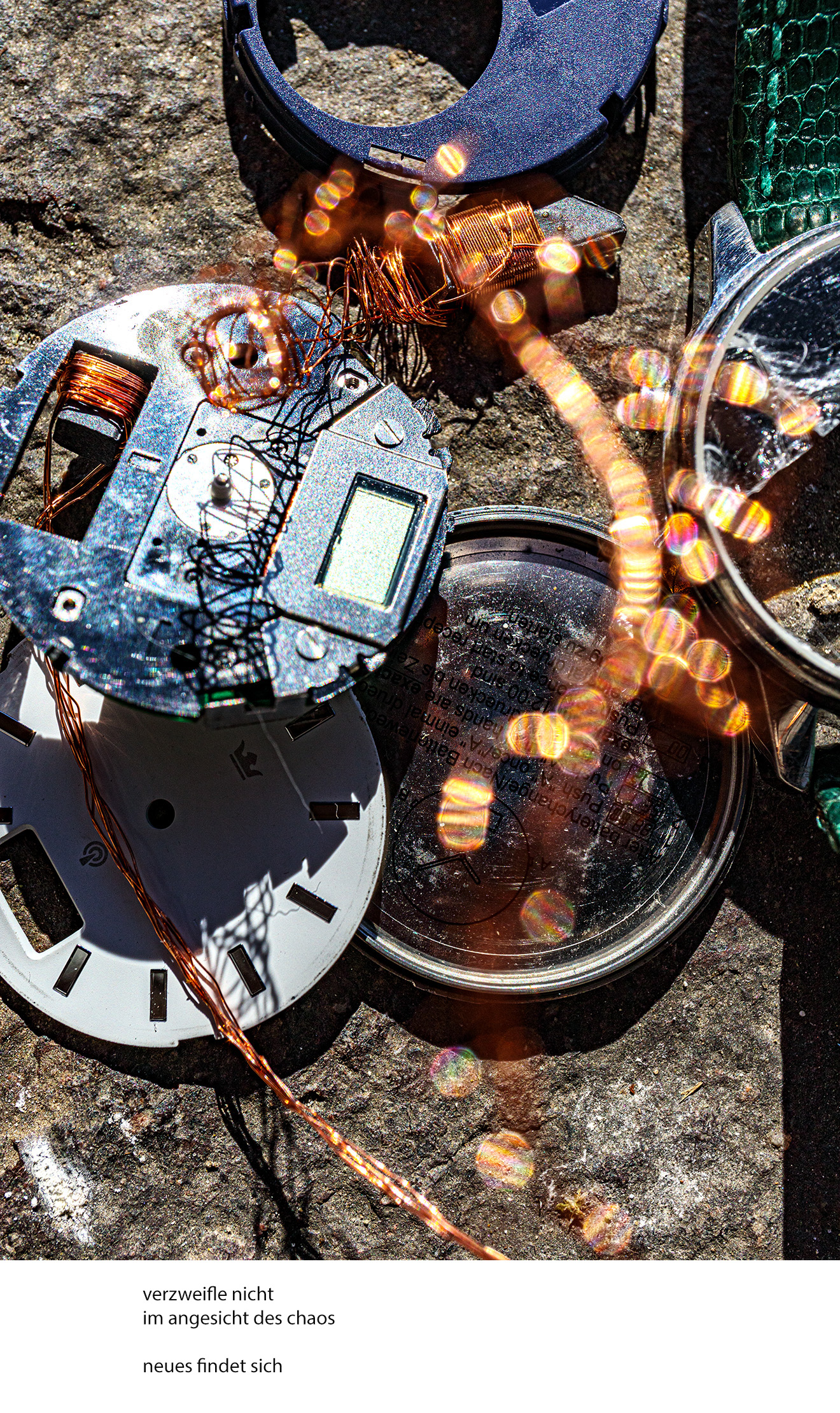 Hermann Maria Gassers Fotografien, entstanden im Quarantäne Frühjahr 2021, suchten nach Ergänzung. Text sollte es sein. Aber welcher? Kein Freund von ausschweifenden Erklärungen seiend – der Reiz der inhaltlichen Erschließung des Dargebotenen liegt doch beim Betrachter, der Betrachterin – entstanden, sich mit dem abgelichteten Sujet verbindende Aussagen. Die bei langen Quarantänespaziergängen freigesetzten Gedanken verdichtet in knapper Form. Bilder & Worte, auf den pandemischen Ausnahmezustand eingehend _ ein Versuch, die damit verbundenen, zu der Zeit wohl auch in manch anderem aufkeimenden Gedanken zu artikulieren. Fünf der abgelichteten & in Worte gefassten subjektiven Betrachtungen Gassers und Pitscheiders werden von einer Tonspur begleitet. Fünf kurze, Bilder und Worte begleitende Musikstücke: Günther Pitscheiders akustischer Versuch, die Un_Ruhe unserer Zeit einzufangen, hörbar zu machen.